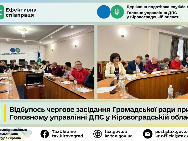 На засіданні Громадської ради також були висвітлені питання щодо особливостей заповнення звіту «Про використання коштів неприбуткових установ і організацій» та декларації з податку на прибуток підприємств. На порядку денному також став розгляд питання продовження строку повноважень Громадської ради на період воєнного стану на території України. Податківці наголосили на важливості проведення своєї консультативної діяльності – семінари з новацій та актуальних питань податкового законодавства на постійній основі проводитимуться фахівцями Головного управління ДПС у Кіровоградській області на базі Кіровоградської регіональної торгово-промислової палати. |